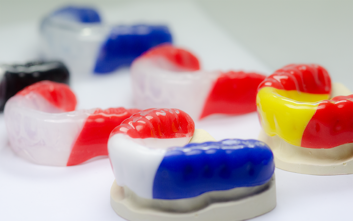 Zur Fertigung seiner Sportmundschutz-Schienen nutzt das Chemnitzer Dentallabor BIOPLAST®-Tiefziehfolien aus hochwertigen Ethylen-Vinylacetat (EVA). Der Werkstoff zeichnet sich nicht nur durch sein geringes Gewicht aus, sondern ist ausreichend elastisch um einwirkende Schlagkräfte zu dämpfen und dennoch starr genug, um den entstehenden Druck gleichmäßig zu verteilen. Das Labor bietet drei verschiedene Sportmundschutz-Typen an, welche sich durch einen zwei- oder dreischichtigen Folienaufbau und zusätzliche Verstärkungssegmente unterscheiden.